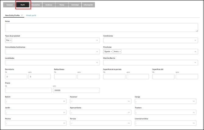 2. En el perfil del cliente, indica las características del inmueble que buscas.