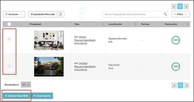 4. Selecciona las propiedades que deseas colocar en el Smartlink.