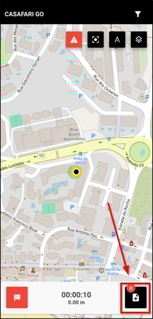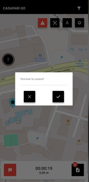 - Un botón para expandir el panel inferior que le permitirá añadir notas o finalizar la ruta.