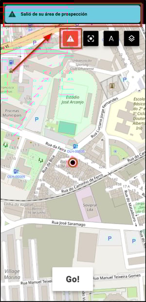 7. Siempre que entres en el mapa y estés fuera de tu área de prospección, aparecerá la siguiente alerta en la parte superior: