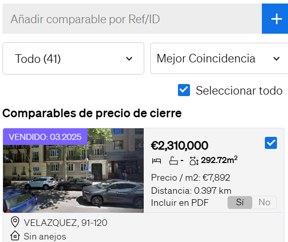 💡 Consejo: Elija comparables que coinciden estrechamente con la ubicación, el tamaño y las características de la propiedad para obtener un análisis más preciso.