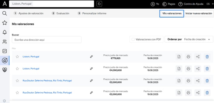 - Desde su panel de control, seleccione la herramienta Valoración de propiedades.