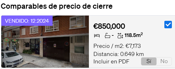 - Púrpura: Indica propiedades vendidas con precios de transacciones cerradas, lo que significa que los datos provienen de registros de cierre oficiales o verificados.