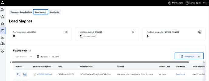 Dans le tableau de bord Lead Magnet, vous pourrez :