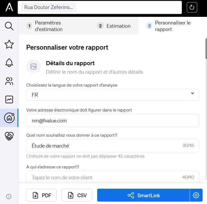 Pour modifier la langue spécifiquement pour un rapport d’évaluation immobilière :