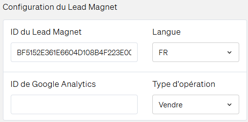 - Dans le panneau de configuration du microsite, faites défiler jusqu'à la section Configuration de Lead Magnet.