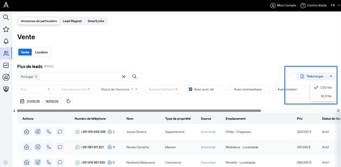 📌 Remarque : chaque téléchargement est limité à 500 leads à la fois.