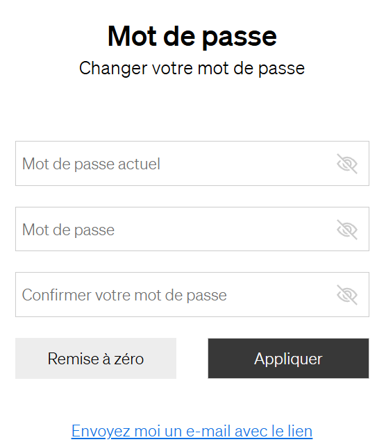 - Entrez votre mot de passe actuel et le nouveau mot de passe que vous souhaitez utiliser.