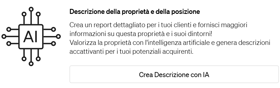 - Cliccando su questo pulsante, CASAFARI creerà automaticamente una descrizione dettagliata della proprietà e della posizione in base ai dati disponibili.