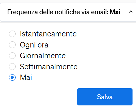 Regolando la frequenza degli avvisi e-mail, potrai ricevere gli aggiornamenti al ritmo più adatto al tuo flusso di lavoro e alle tue esigenze.