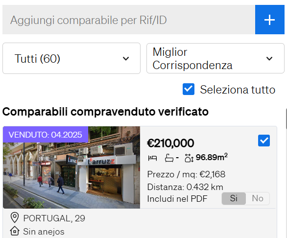 💡 Suggerimento: per un'analisi più accurata, scegli immobili comparabili che corrispondano il più possibile alla posizione, alle dimensioni e alle caratteristiche dell'immobile.
