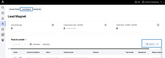 Questa dashboard ti offre una visione consolidata delle prestazioni del tuo Lead Magnet, aiutandoti a comprendere il comportamento dei lead e a ottimizzare la tua strategia.