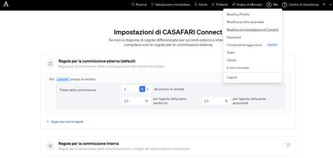 - Seleziona Impostazioni di connessione per definire le informazioni di commissione preferite