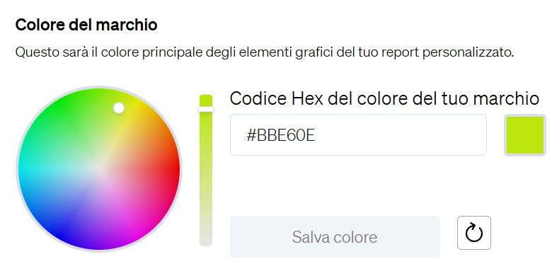- Scegli un colore primario per i tuoi report e l'interfaccia della piattaforma.