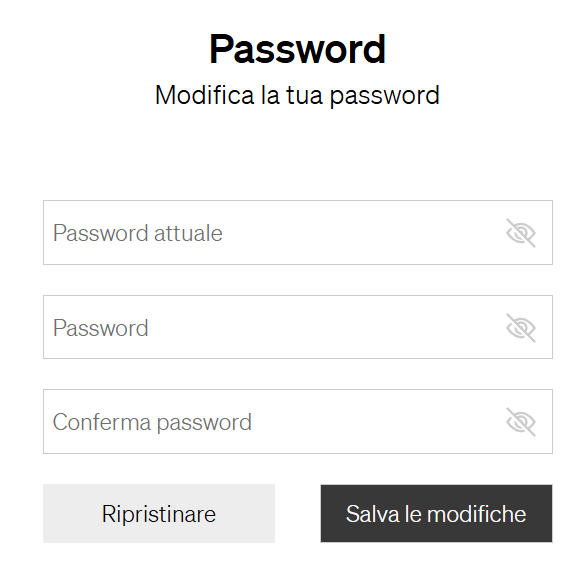 - Inserisci la tua password attuale e la nuova password che desideri utilizzare.