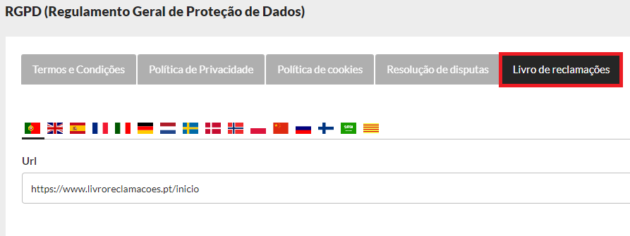 4. Escreva os textos para termos e condições, política de privacidade, política de cookies, resolução de litígios e aplique traduções.