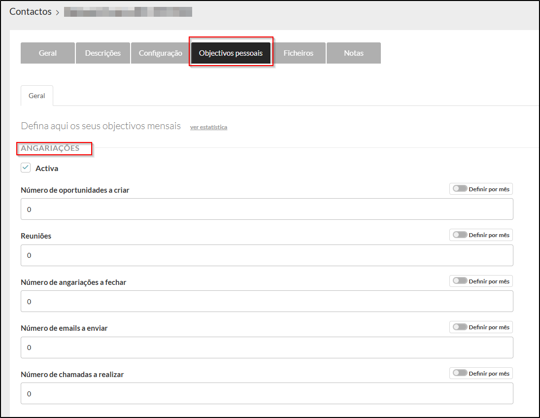 6. Defina Objetivos pessoais de angariações e de vendas: