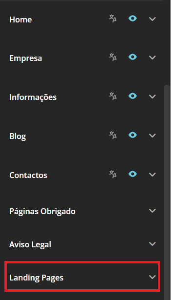 2. Confira a opção Landing Pages.