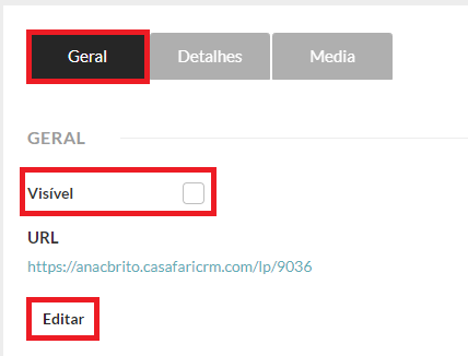 5. Defina visibilidade no website e URL.