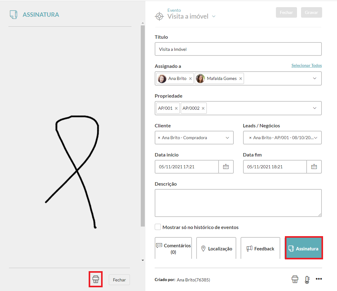 4. Veja e imprima um documento com a assinatura do potencial cliente que comprova a visita ao imóvel.