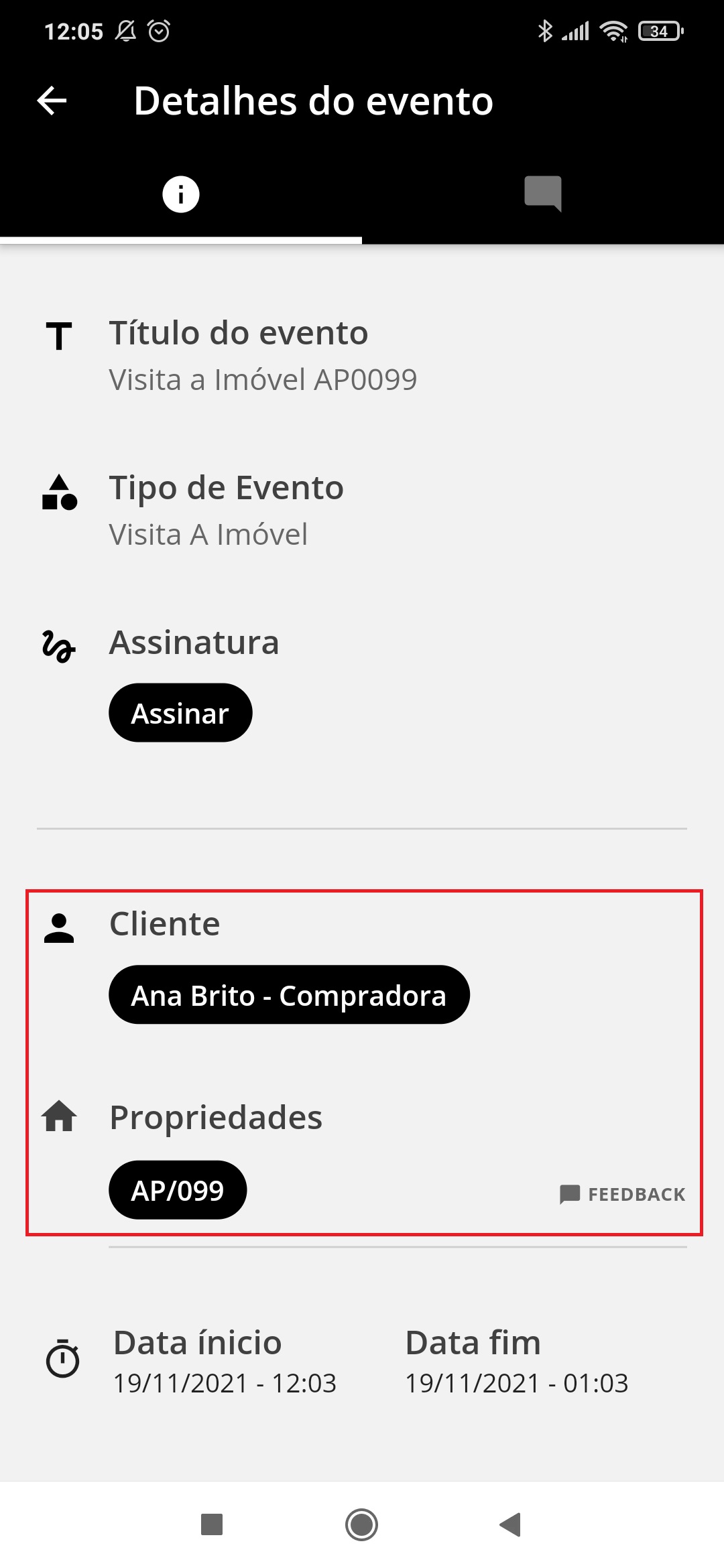 2. Veja o evento e todos os detalhes do cliente e propriedade.