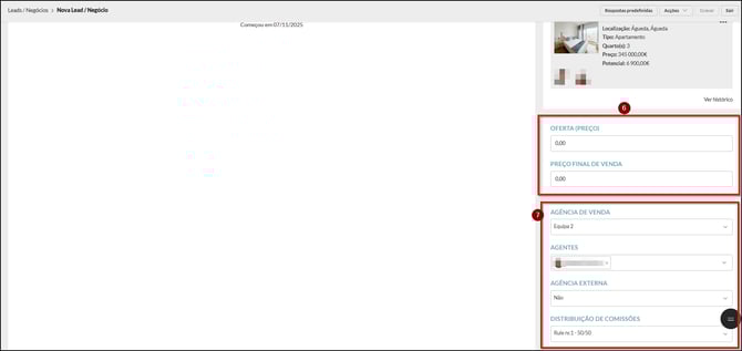 5. Escolha a origem da lead, defina o agente responsável e a propriedade de interesse.