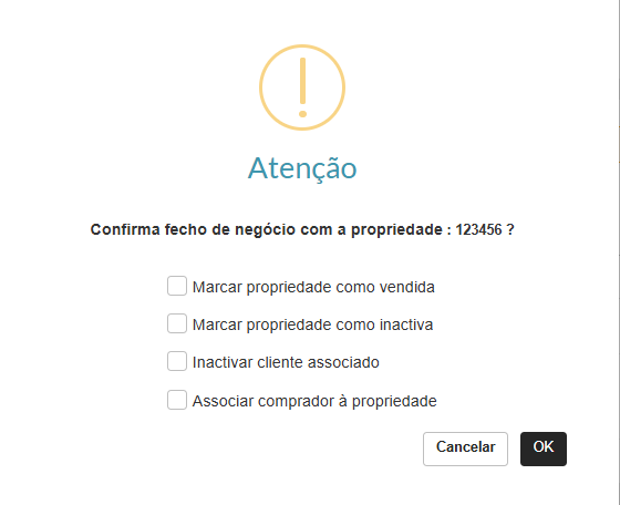 - Se selecionar "Ganho" irá surgir o seguinte alerta com uma checklist: