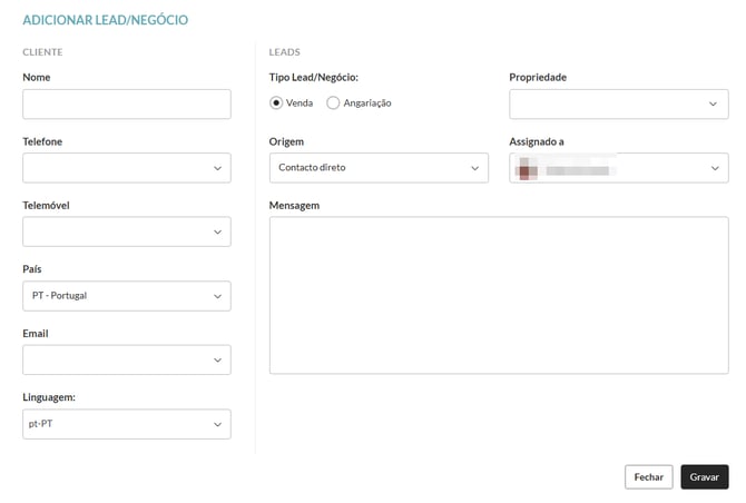 Através da lista de propriedades privadas existentes em todos os portais imobiliários, é possível adicionar uma lead de angariação: