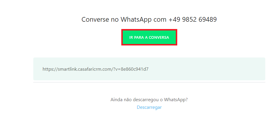 É essencial que o contacto tenha configurado o número de telefone e o país no perfil para que possa partilhar Smartlinks pelo WhatsApp.