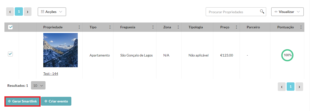 4. Selecione as propriedades e clique em “Gerar Smartlink”.