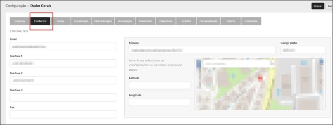 Se for por empresa, os dados enviados são os que tiver preenchido em Configuração > Dados Gerais > Contactos.