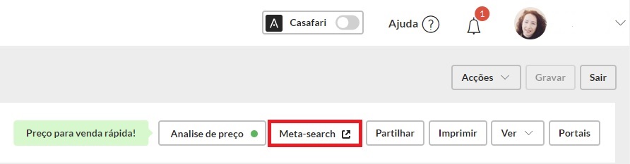 3. Clique na opção “Metasearch” e veja todos os anúncios desta propriedade no CASAFARI.