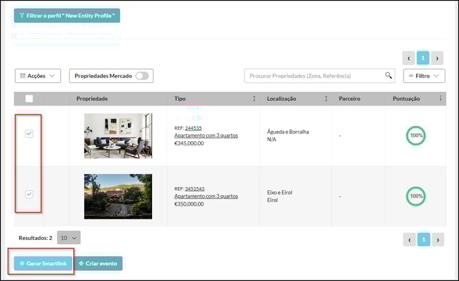 4. Selecione as Propriedades que deseja colocar no Smartlink.