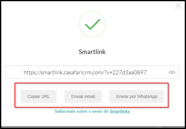 5. Clique em Gerar Smartlink, copie o link e/ou envie por e-mail* ou WhatsApp: