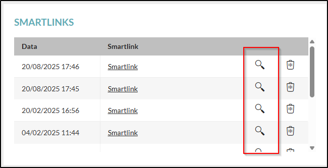 2. Aceda ao painel de Smartlinks e clique no símbolo destacado: