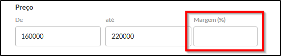 Se não tiver nenhum valor definido como margem de preço de propriedade, os resultados na lista de propriedades, em termos de preço, serão os seguintes: