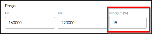 os parâmetros aqui definidos serão refletidos nos resultados ao filtrar o perfil, no entanto existe uma particularidade no campo Preço.