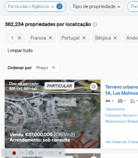 Pode pesquisar imĂłveis FSBO utilizando o filtro "Particular|AgĂȘncia" disponĂvel na pĂĄgina de pesquisa de propriedades. Veja como: