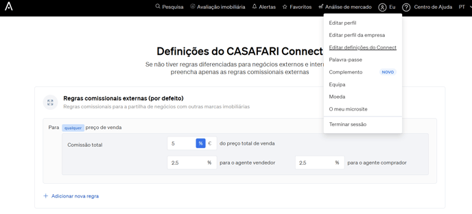 Para configurar as suas regras de comissĂŁo no CASAFARI Connect, siga os passos abaixo:
