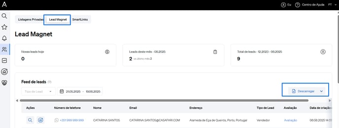 Este painel oferece uma visão consolidada do desempenho do seu Lead Magnet, ajudando-o a compreender o comportamento dos leads e a otimizar a sua estratégia.