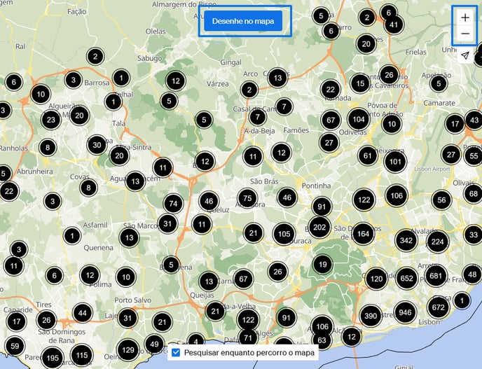 - Utilize a ferramenta Desenhar no mapa para criar uma área personalizada.