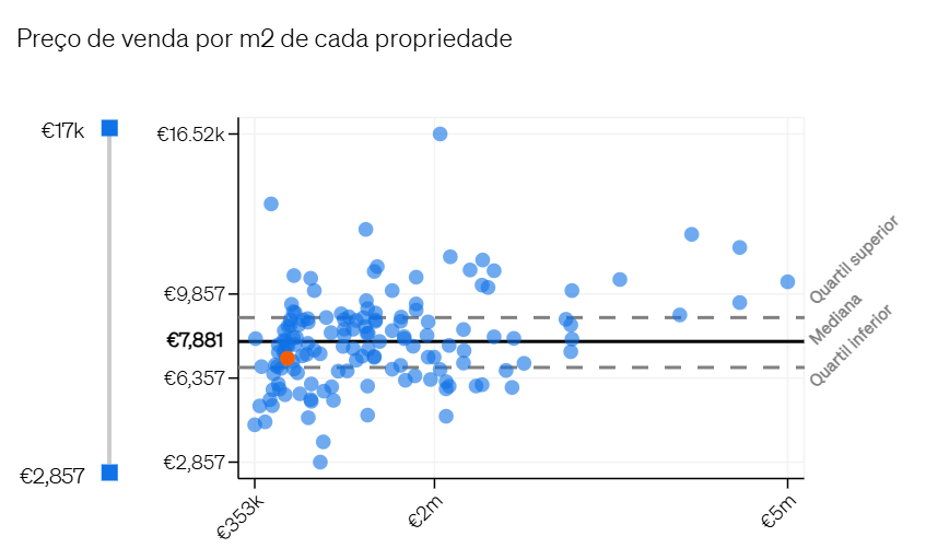 Isto permite-lhe identificar rapidamente como o imóvel se compara com outros anúncios em termos de preço, tamanho ou outras métricas relevantes.