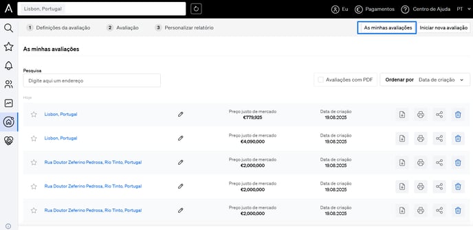 📄 Visualize e efetue a gestão das suas avaliações anteriores